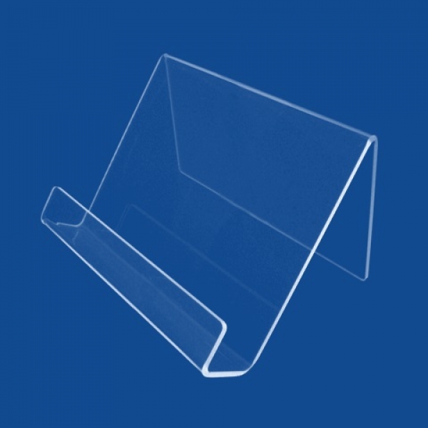 Buchstütze mit Aufkantung DIN A4 Querformat, aus Acryl 3mm klar, Kanten geschliffen, Ecken gerundet