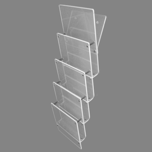 4-fach Wand Prospekthalter DIN A4 Hochformat untereinander4 Fächer untereinander in DIN A4 Hochformat = 210mm breit x 297mm hochInnenmaße: Breite 214mm, Höhe 297mm, Tiefe 23mm Außenmaße: Breite 230mm, Höhe 791mm, Tiefe 80mmund einer Fülltiefe von 23mm mit 2 Bohrlöchern zur Wandbefestigung Durchmesser 5mmaus Acryl 3mm klar, kein Vergilben mit 30 Jahren Garantie,Kanten geschliffen, Ecken gerundetSeitenteile mit Metallstiften im Edelstahl-look