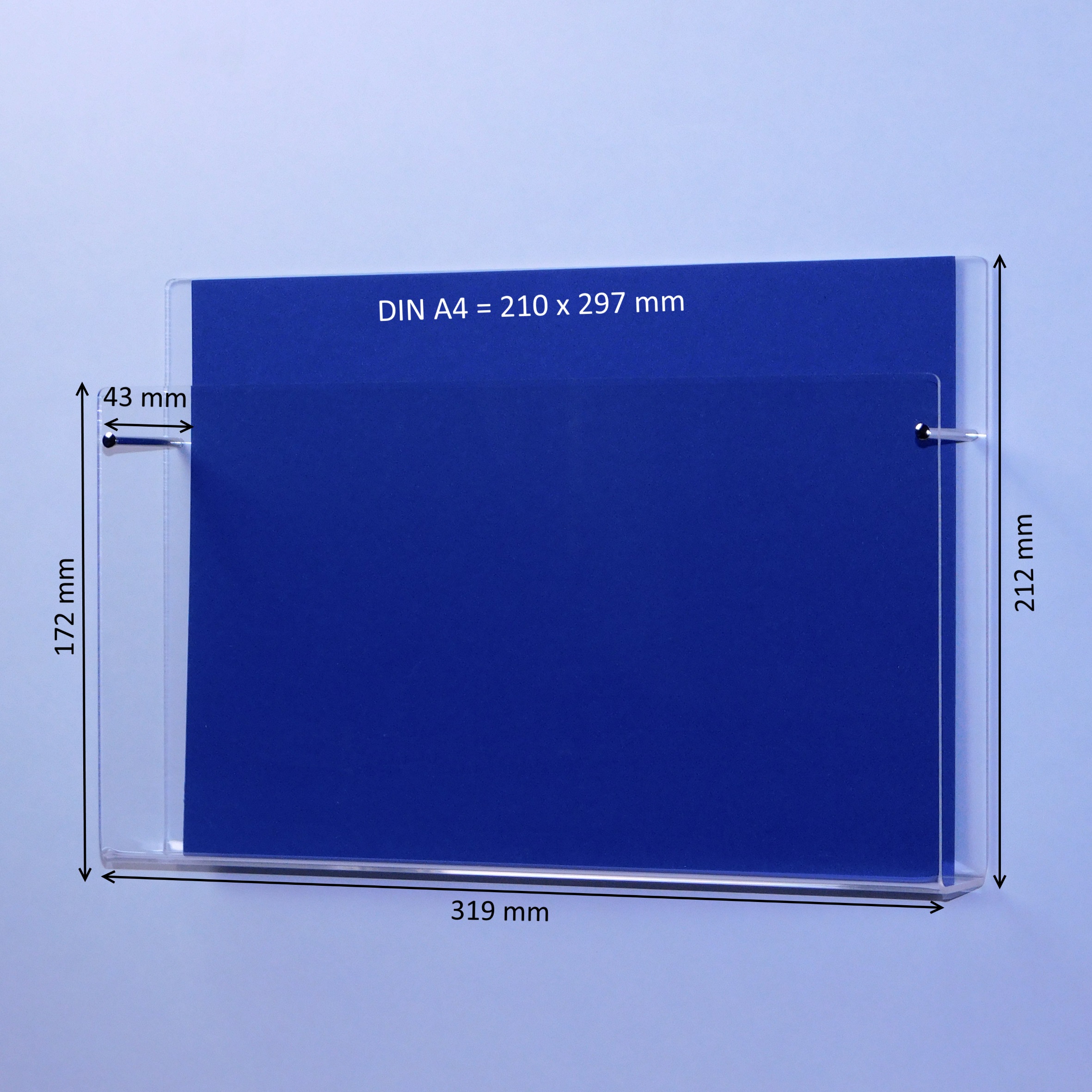 Mobile Preview: Wand-Prospekthalter DIN A4 Querformat Fülltiefe 43mm
