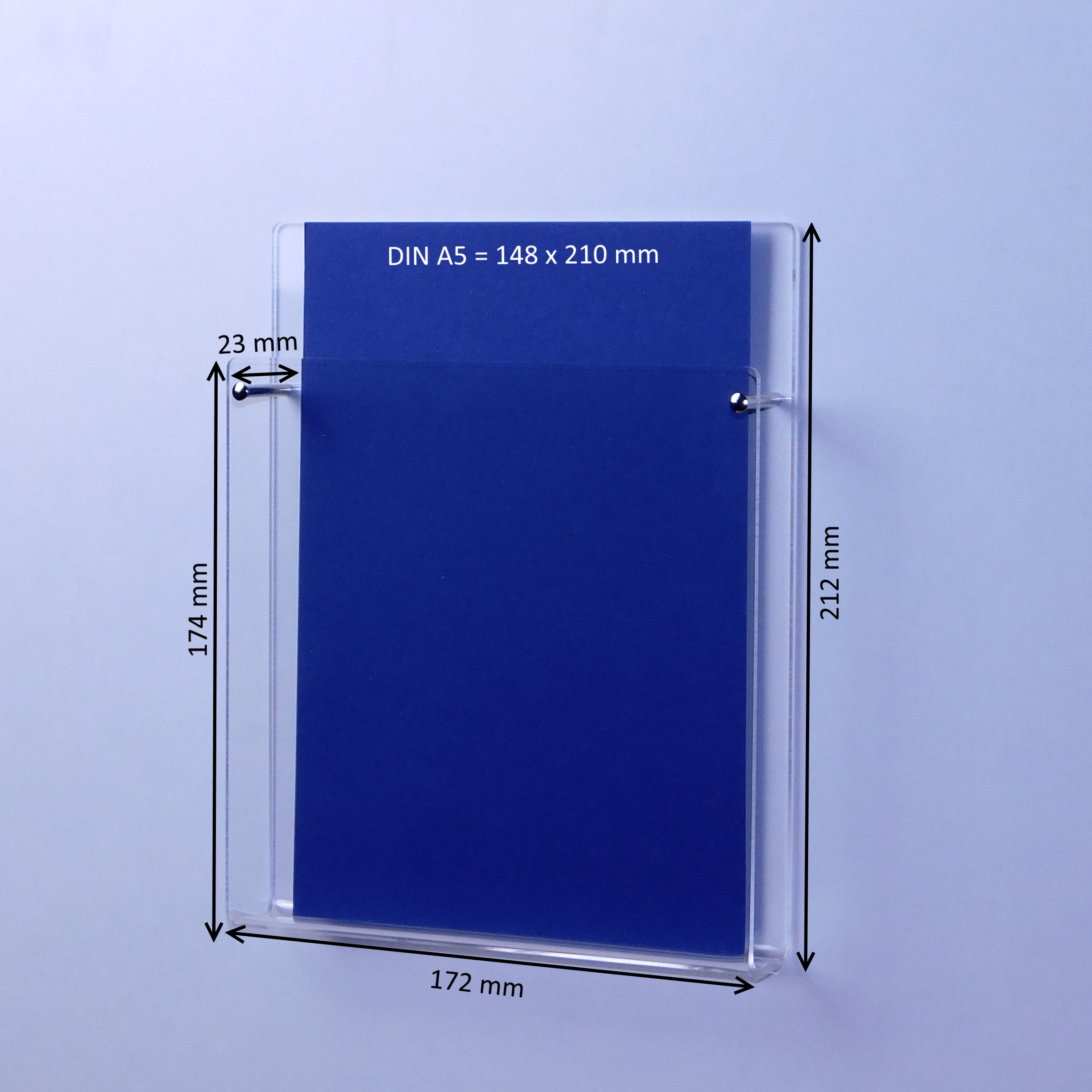 Wand-Prospekthalter DIN A5 Hochformat Fülltiefe 23mm