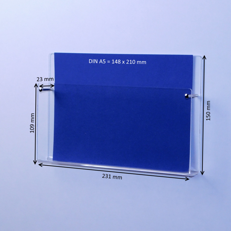 Wand-Prospekthalter DIN A5 Querformat Fülltiefe 23mm
